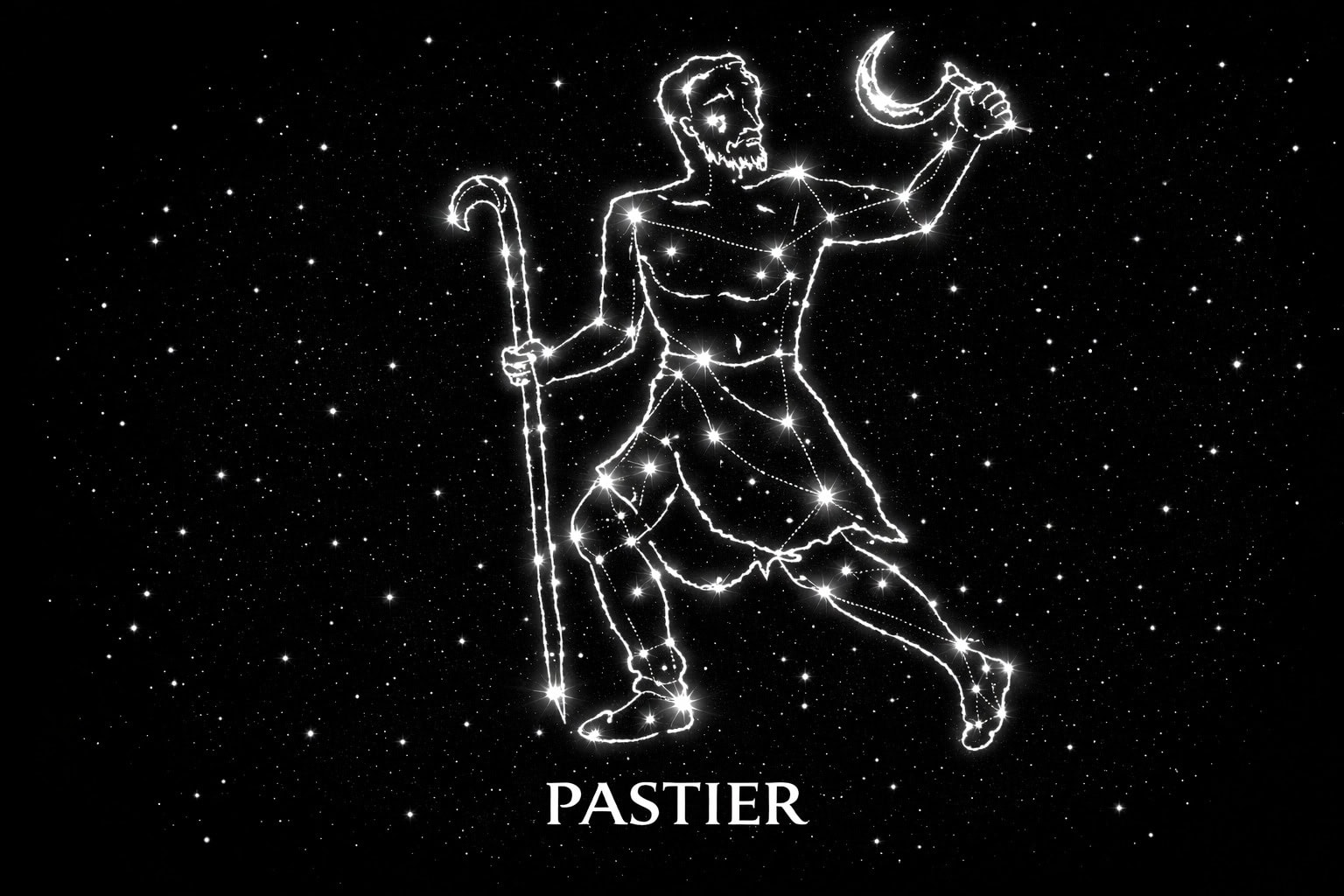 Bootes (lat.) znamená „prichádzajúci“ (G, E, H, O). Bol tiež nazývaný Arctophylax – „ochranca veľkého stáda“. Mená jeho hviezd znamenajú „prebodnutý“, „drviaci“ a „záchranca“. Názov hviezdy Al Katurops (nachádzajúcej sa v pastierovej pravej paži) znamená „výhonok, palica“. Pastier je zobrazovaný ako správca, panovník a ochranca stáda. Ako mocný žnec má aj srp a zhromažďuje svoje stádo k žatve.
