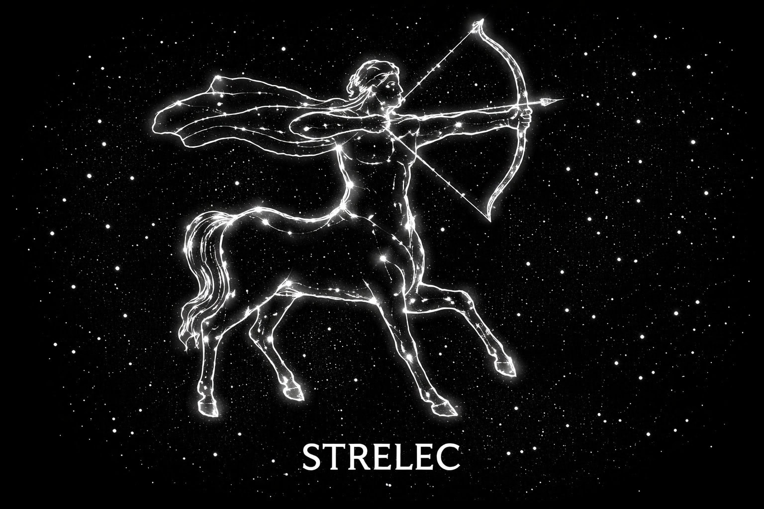 Môžeme vidieť jazdca s lukom a šípmi, víťazného a mocného bojovníka. Vyzerá ako kentaur, bytosť dvojej podstaty; avšak už nie v spojení s krížom v dolných častiach oblohy, kde sa ponúka ako obeť. Teraz je táto postava povýšená a vypína sa, pretože je postavená na slnečnú dráhu. Je to Cheirón (G) – „ten, ktorý šíri spravodlivosť“. Jeho ozubené šípy sú namierené priamo na srdce Škorpióna.